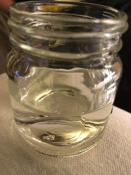 Well this isn’t what I drank, but this is the type of glass I’d recommend. Fill with Maple Vodka (chilled, if you like). Cut a nickel-sized slice of jalapeño and drop it in the glass. Let it sit there for 10 minutes or so, then enjoy. You won’t regret it.